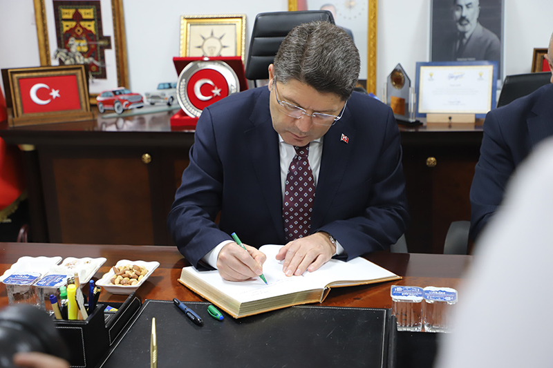 Adalet Bakanı Yılmaz Tunç, çeşitli programlara katılmak üzere Afyonkarahisar’a geldi. AK Parti Afyonkarahisar İl Başkanlığını ziyaret eden Bakan Tunç’u, İl Başkanı Av. Turgay Şahin ve parti teşkilatı karşıladı. Parti binası önünde gerçekleştirilen karşılamada Bakan Tunç’a İl Başkan Yardımcısı Nazmiye Tuğral tarafından çiçek takdim edildi. Karşılamanın ardından makam ziyaretine geçildi ve Bakan Tunç anı defterini imzaladı.